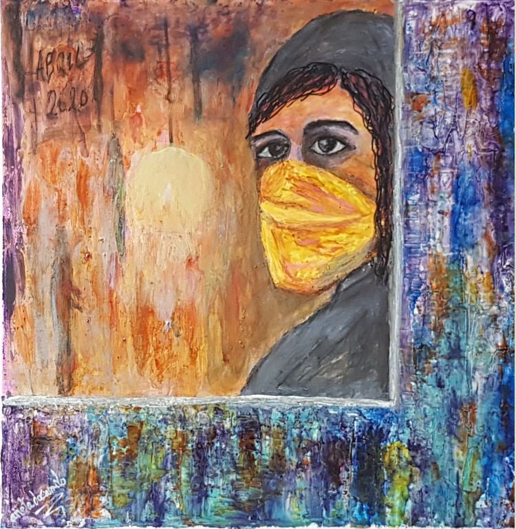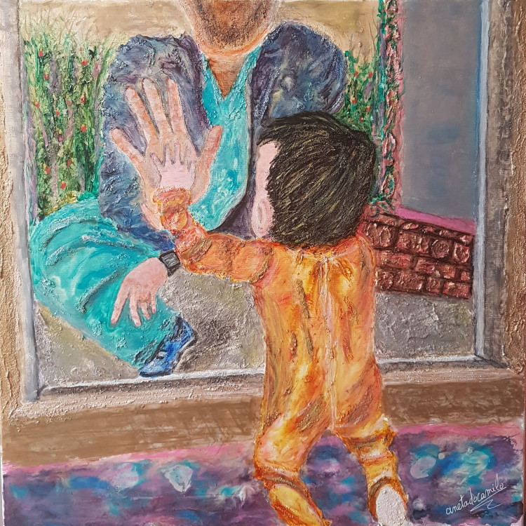 Os meus lenzos non podían non reflexar o vivido en días nos que imaxes desgarradoras nos conmovían. Tratei de plasmar a dureza do momento pero ó mesmo tempo amosar a certeza e a Esperanza de que de esto se sae. Demasiadas vítimas vai deixar esta guerra silenciosa e estos cadros son tamén a miña forma de homenaxear a todos aqueles que contribuíron a que a traxedia non fose aínda maior.